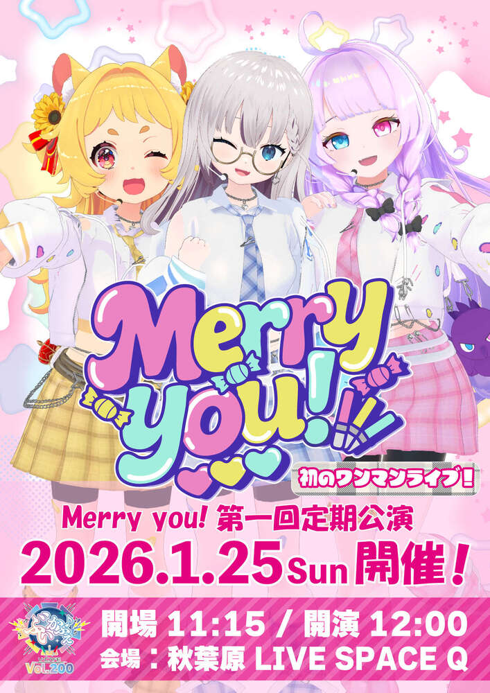 ぶいかふぇ♪vol.200『Merry you!第一回定期公演』 SCHEDULE 2026/01/25(日) 12:00 - 14:00 詳細はこちらから! https://jcm-event.bitfan.id/events/14852 URLをコピーする 報告する